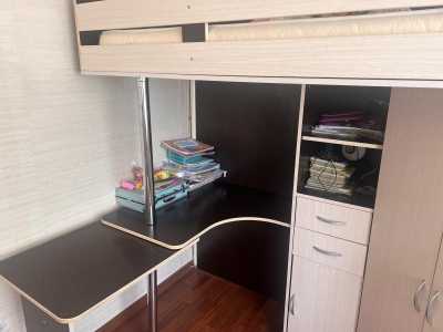 В отличном состоянии.Кровать больная просторная, со столом партой на 2 рабочих места можно ,парта выдвигается если нужно...