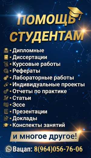Курсовая работа, дипломная работа, магистерская диссертация, кандидатская, реферат, отчет по практике, дневник практики...